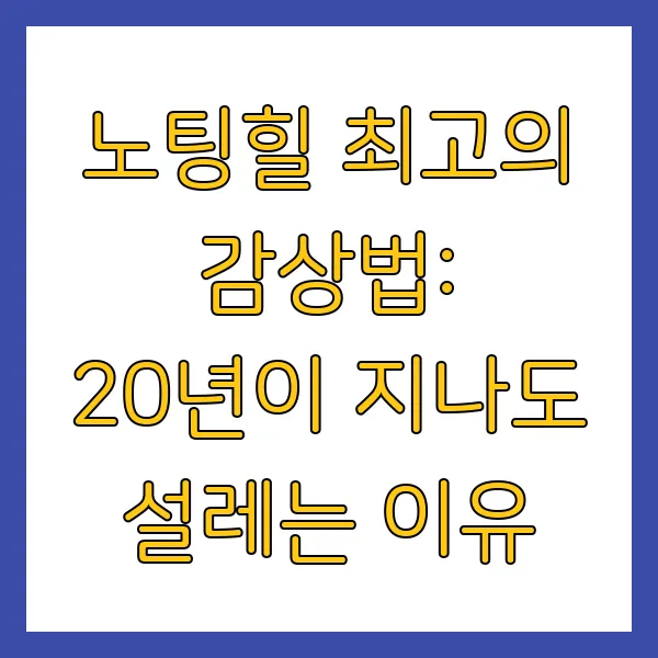 시대를 초월해 사랑받는 로맨틱 코미디의 교과서 '노팅힐'. 오늘 알려드린 감상 포인트를 기억하며 다시 한번 영화를 감상해 보세요. 처음 봤을 때의 설렘은 물론, 이전에는 미처 발견하지 못했던 새로운 감동과 재미를 느끼실 수 있을 겁니다. 이것이야말로 여러분만의 노팅힐 최고의 감상법 을 완성하는 길입니다.