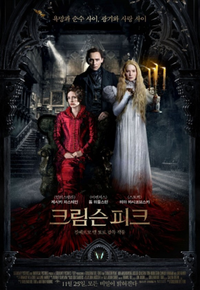 영화 크림슨 피크 2015 주인공 이디스는 작가 지망생이자 부유한 건축가인 카터 밑에서 혼자 자란 아름다운 미국 여성이다.이디스는 10살 때 콜레라로 어머니를 잃고, 어머니의 유령을 보기 시작한다.(어머니의 마지막 모습을 보지 못했기 때문에 어머니에 대한 그리움이 커져서 어머니를 보기 시작했다고 한다)엄마 유령은 크림슨 피크를 조심하라고 말하며 미래에 대해 경고한다.